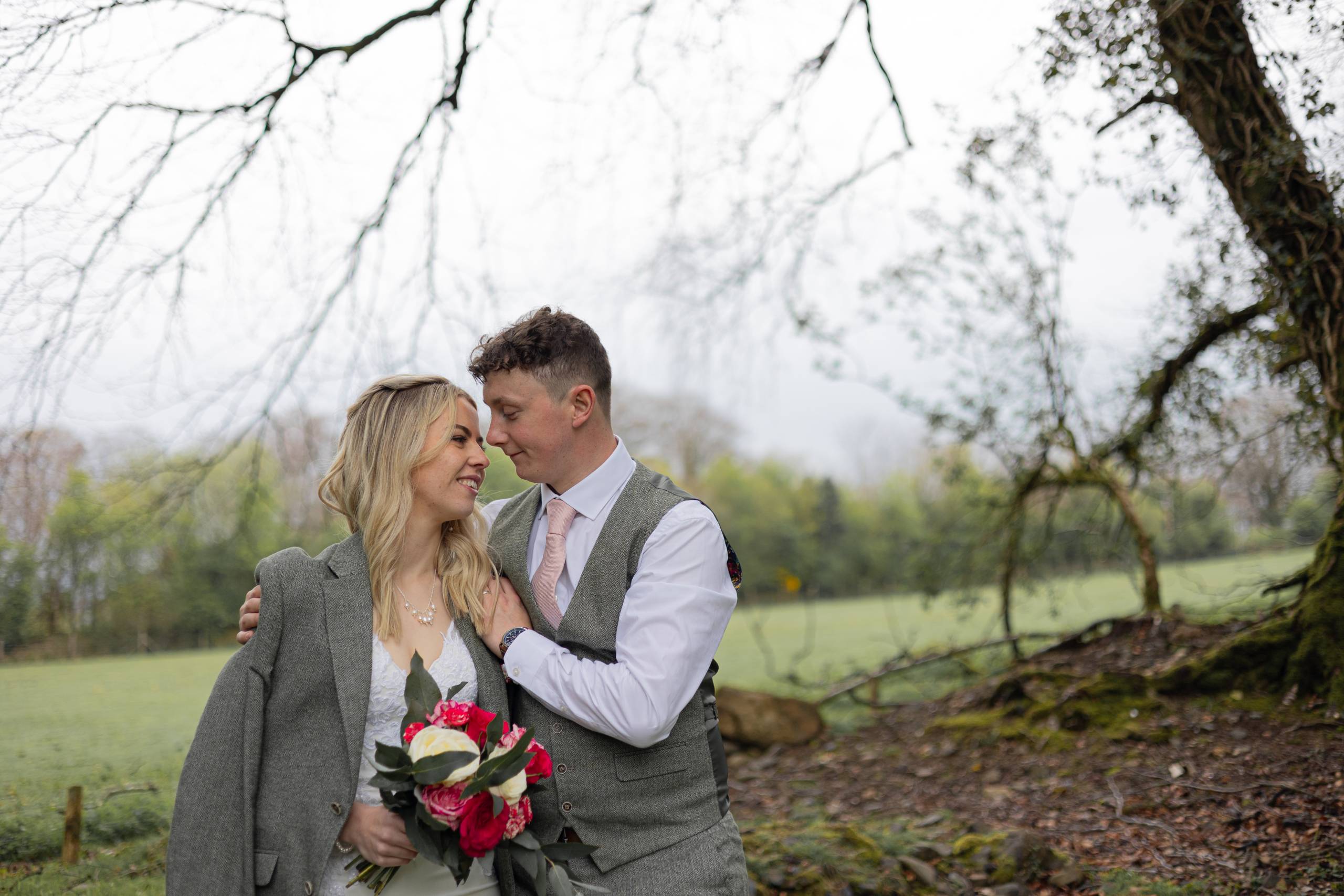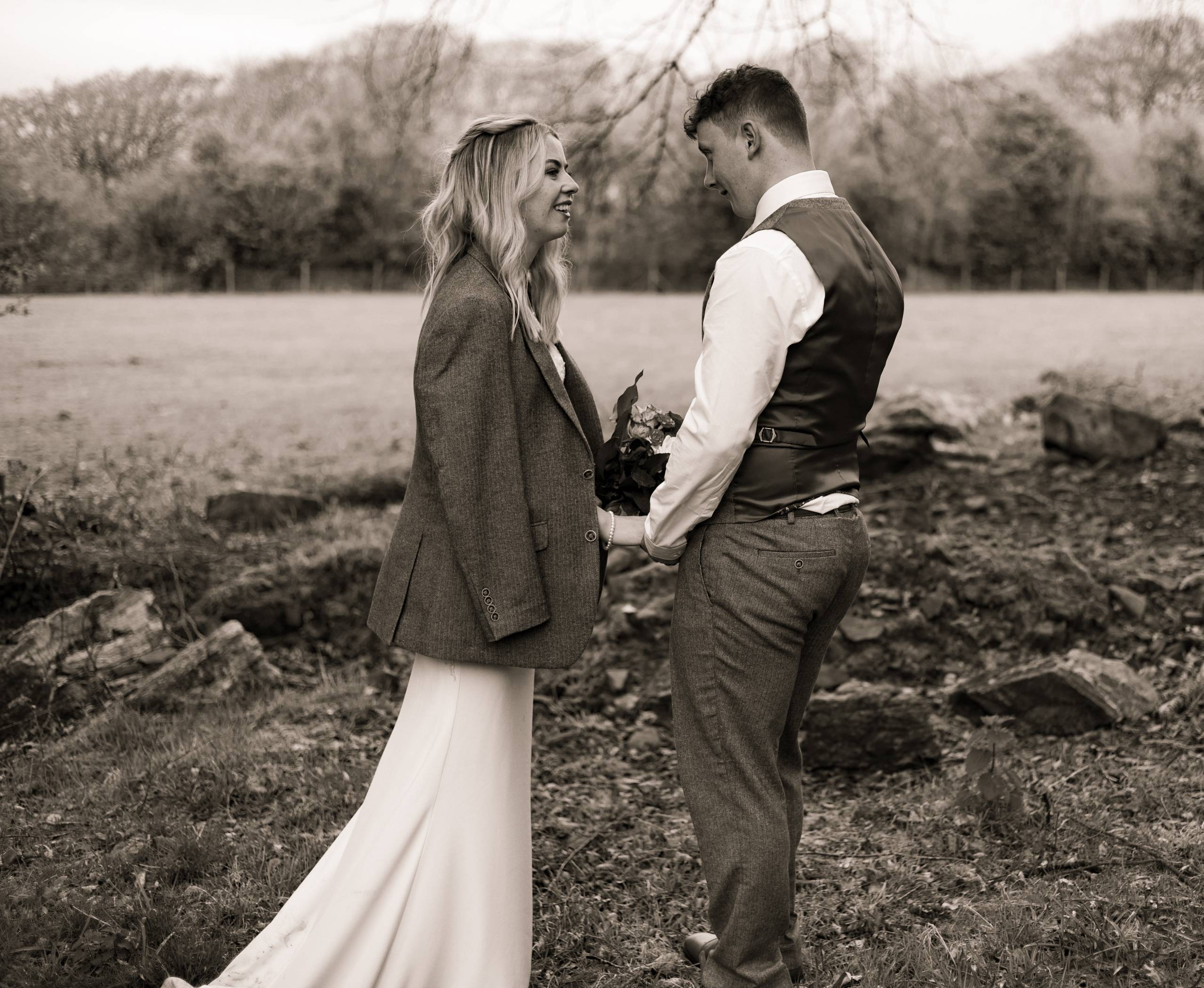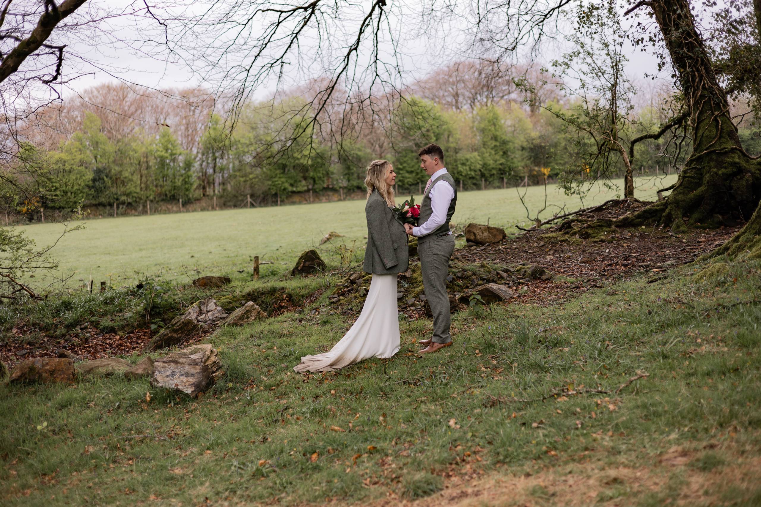 The month April and the day started with rain. But by midday when the outdoor ceremony commenced the sun shone down and warmed our faces. Such lovely setting on the moorland for this wedding.