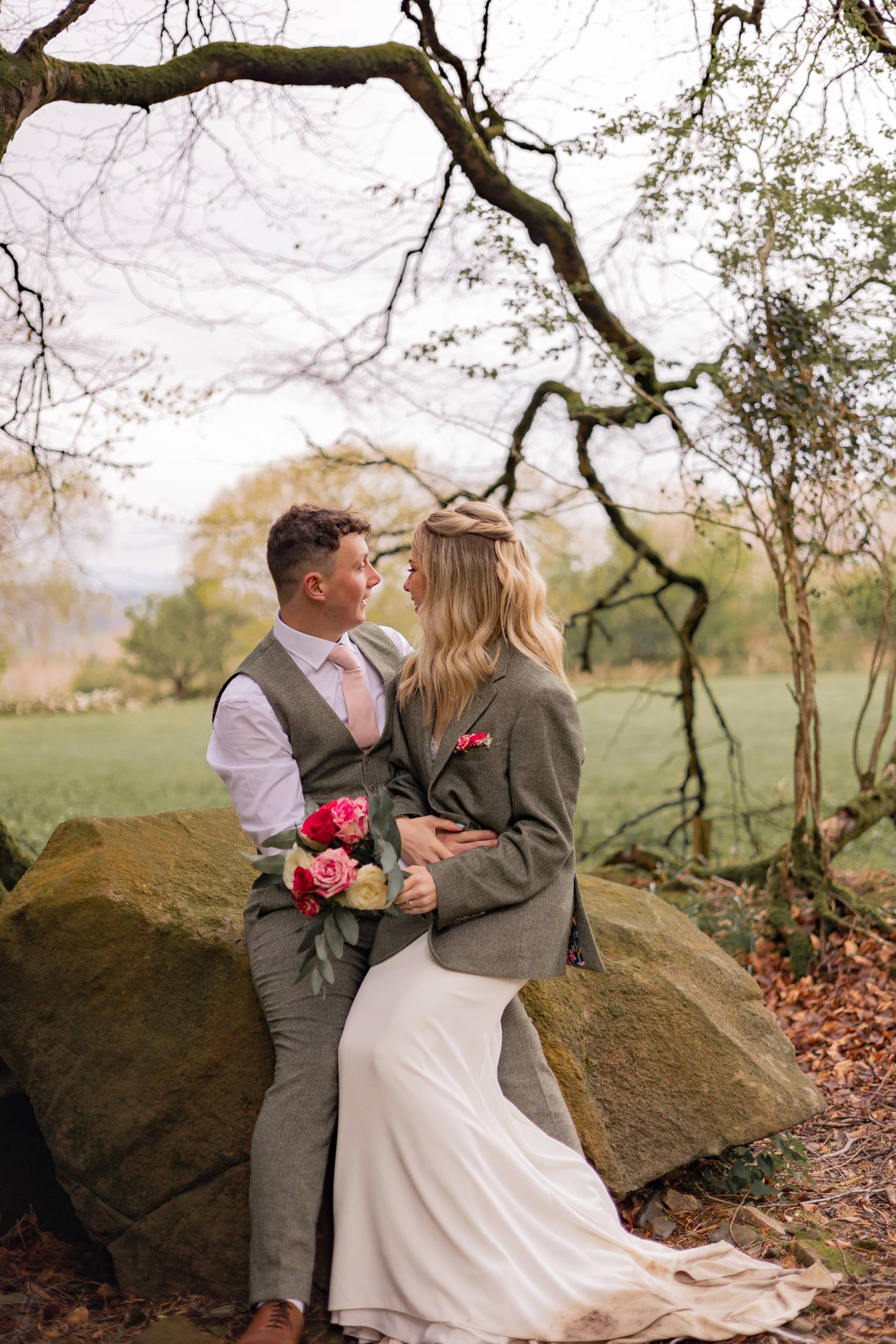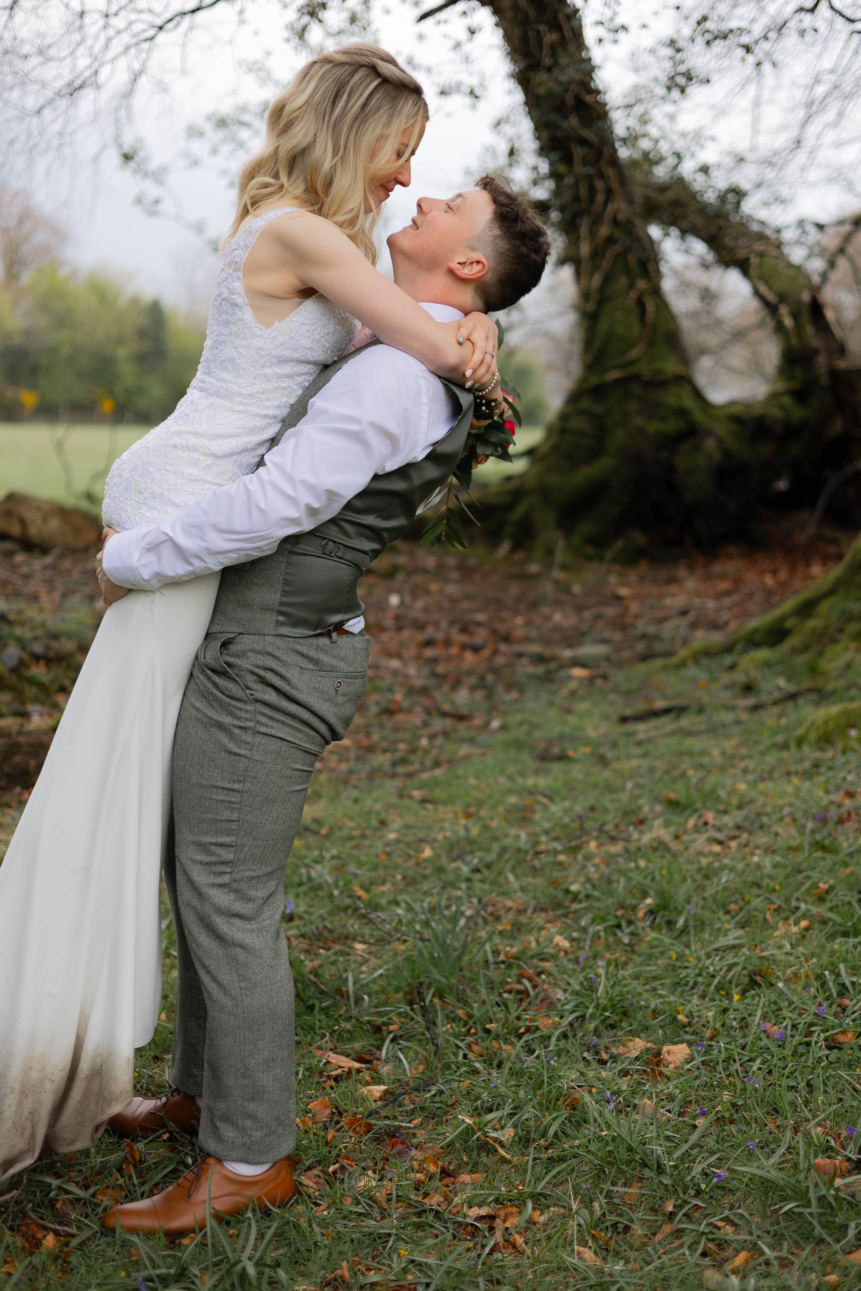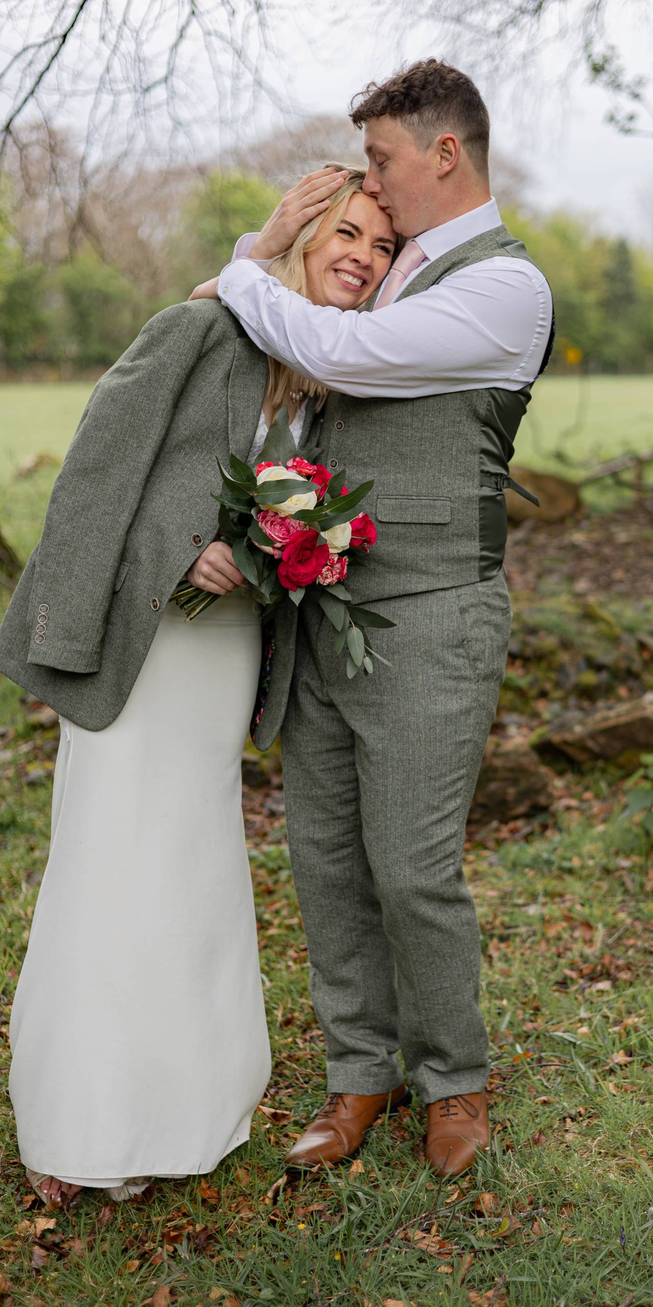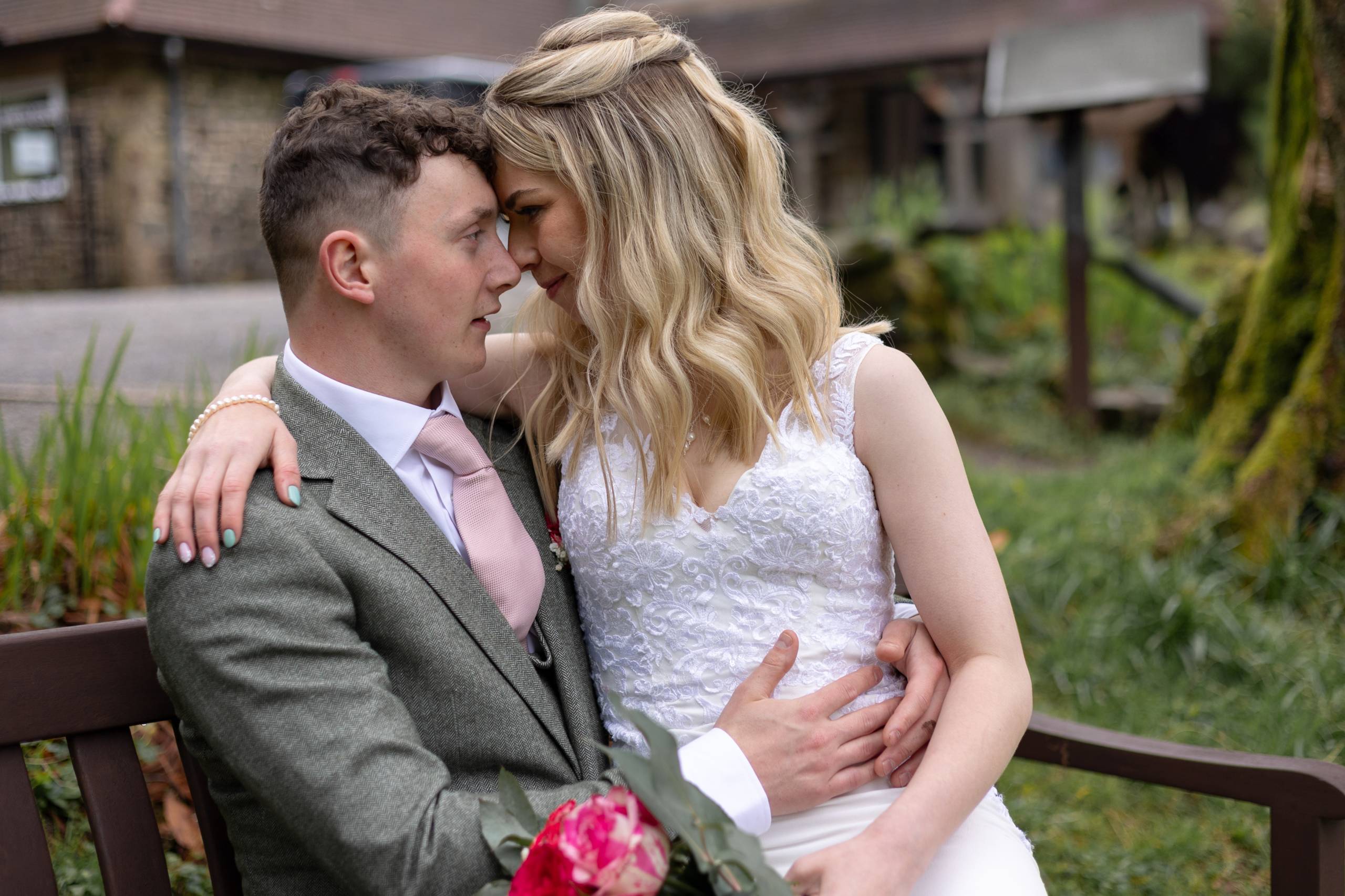 The month April and the day started with rain. But by midday when the outdoor ceremony commenced the sun shone down and warmed our faces. Such lovely setting on the moorland for this wedding.